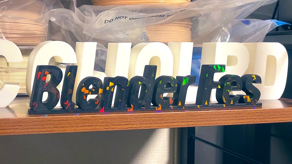 追加でBlenderFesのオブジェを作る際に、テクスチャPEIプレートを用いて、印刷時の底面(定着面)を虹色に光らせることにしました。BlenderFesの文字がキラキラして見えるのは、塗装ではなく、微細な凹凸に光が反射することによる構造色によるものです。