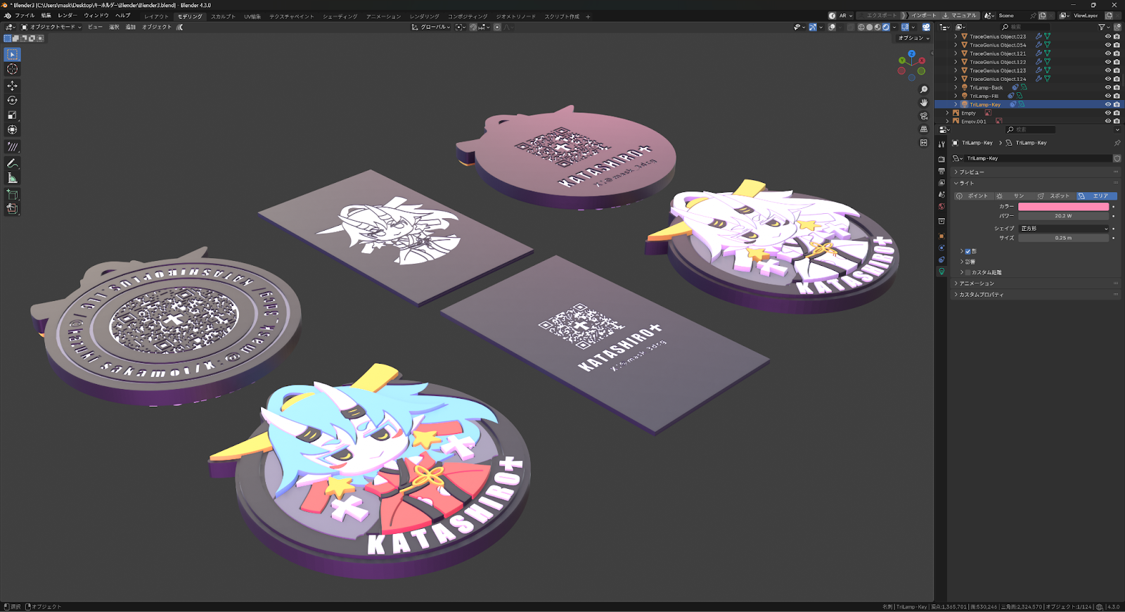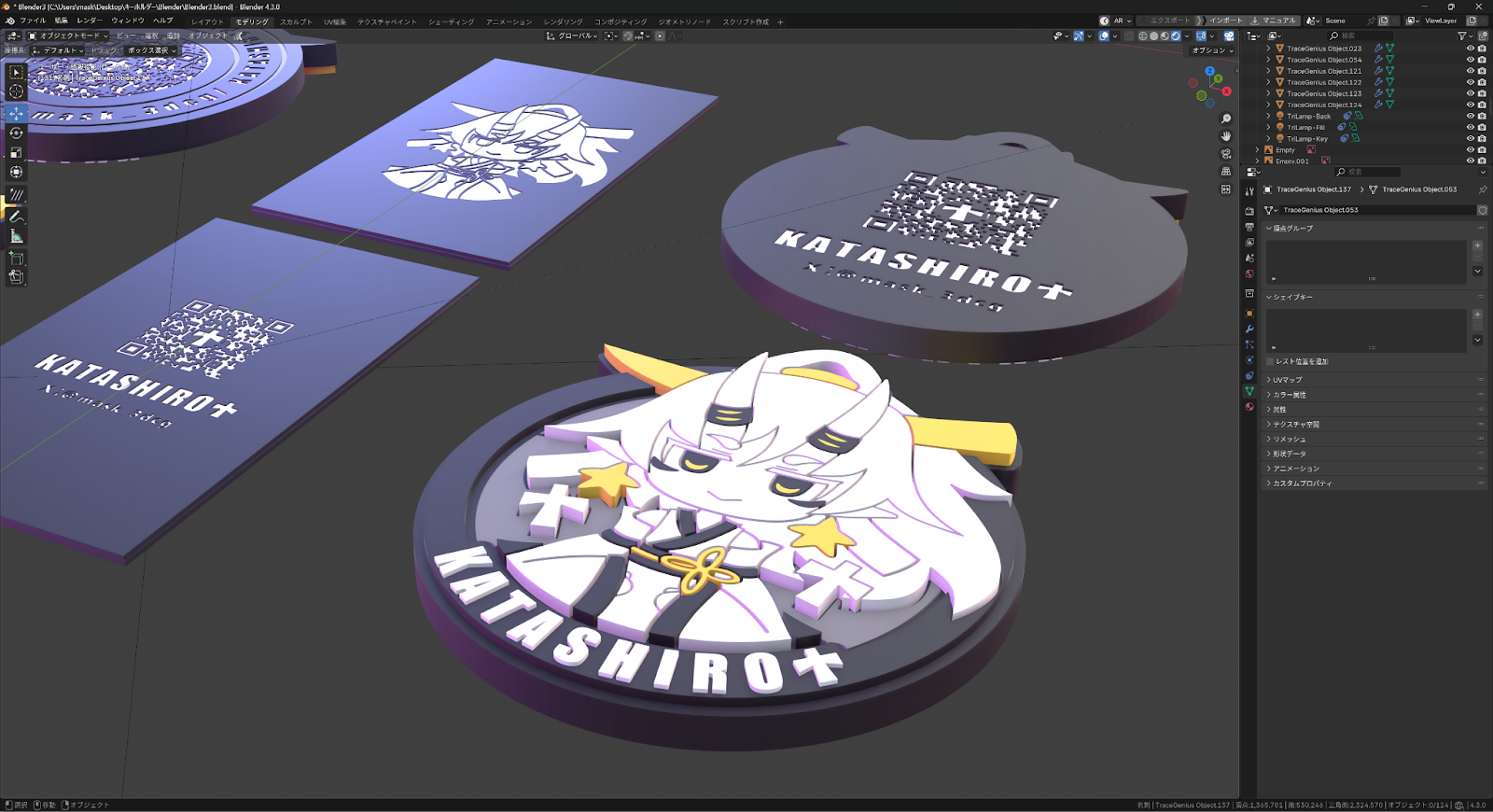 3Dモデリングのスキルがない人でも、Illustratorでのデザインができれば、Blenderで簡単に厚み付けを行い、オリジナルのアイテムが作れることがわかりました。